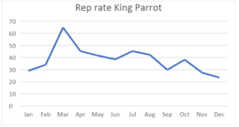 There seems to be some variability over the years too – they were sighted a lot more in 2015 & 2018 than in 2016 & 2017, and though sightings were low in early 2020 – presumably due to fires and lack of observers – he expects there to be a lot of sightings for 2021 as they are being reported everywhere at the moment.